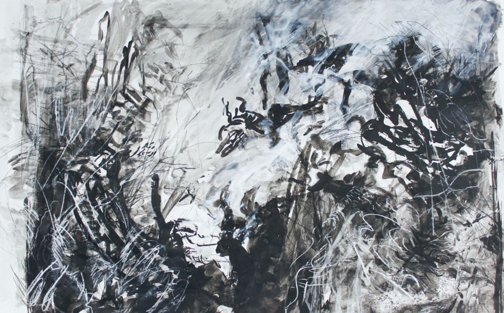 ![]() inkt verf op papier, 260 x 150 cm, 2025 © Pauline Vanhoven |